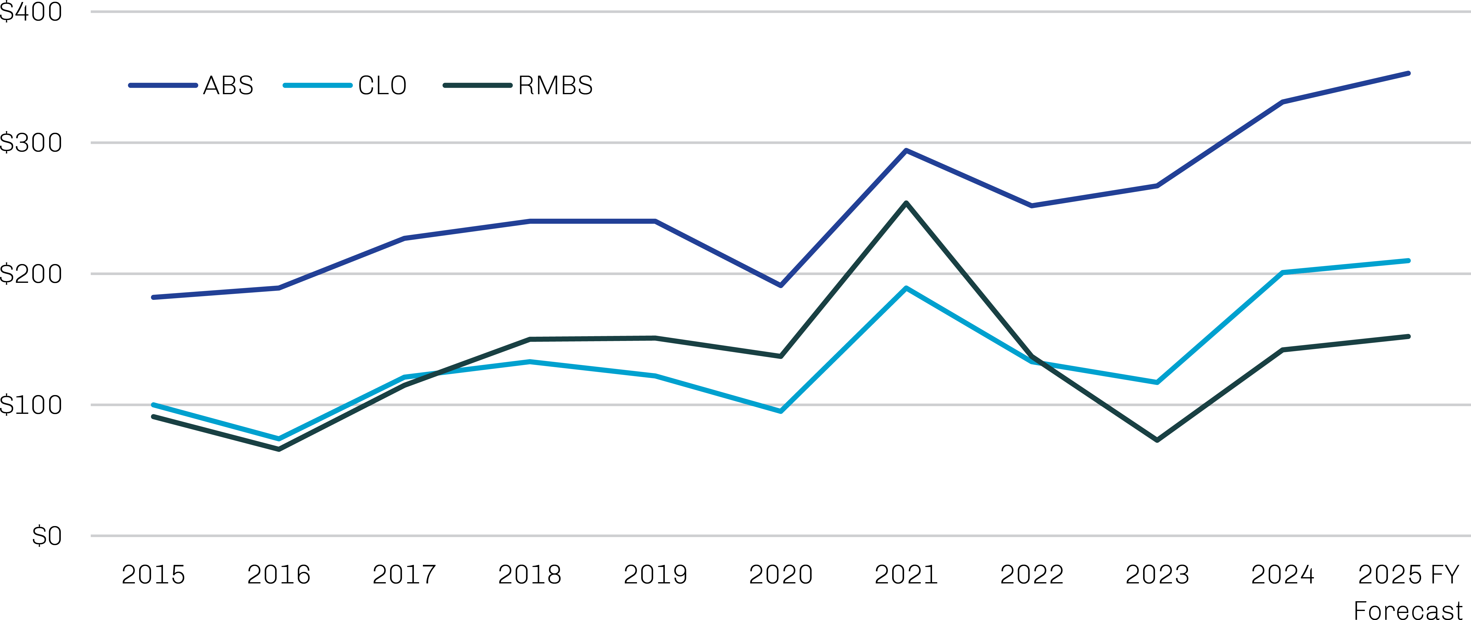 Structured credit markets in 2025 have been defined by strong demand for yield-oriented assets, and issuance has surged in response. As shown in Exhibit 1, issuance of both collateralized loan obligations (CLOs) and asset-backed securities (ABS) are on pace for new annual highs, while residential mortgage-backed securities (RMBS) volumes are also elevated, if below peak levels.