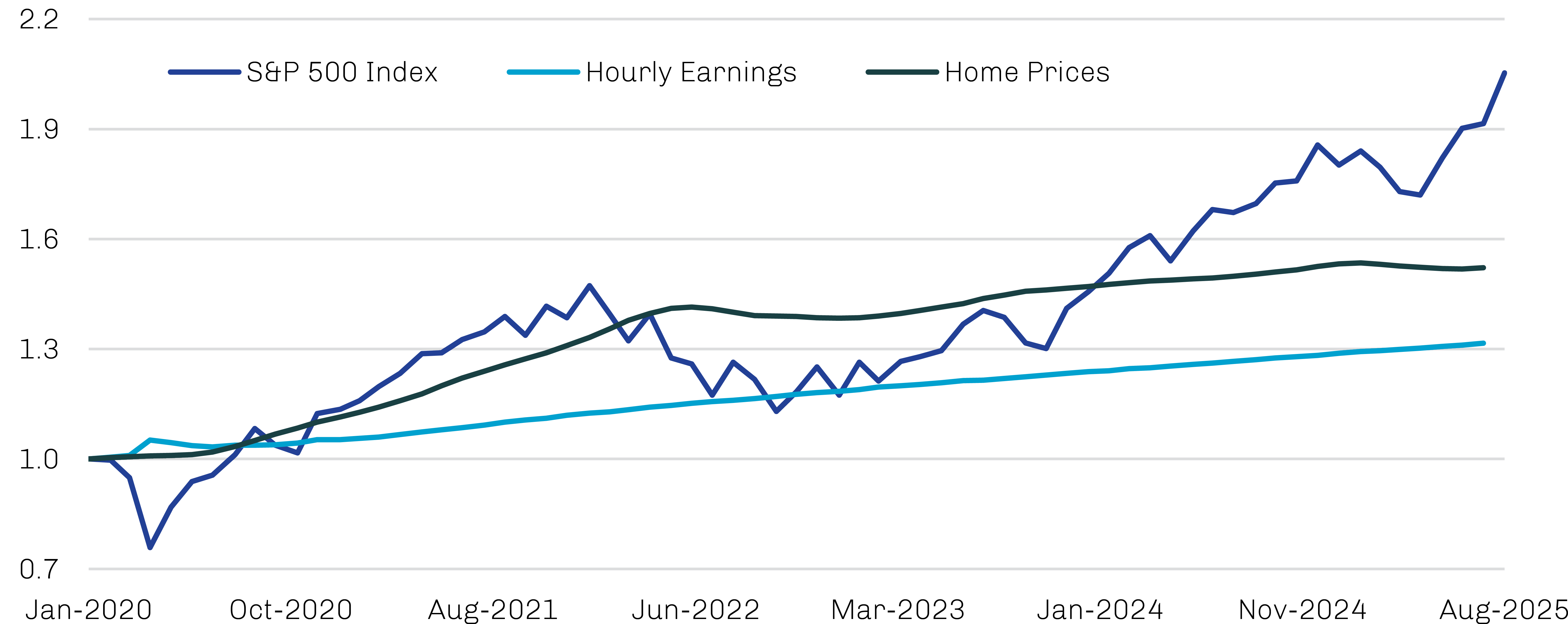 Fundamentals, meanwhile, show growing bifurcation. Higher-income households remain resilient, supported by gains in equity and housing markets, while lower-income households continue to face pressure from high borrowing costs, elevated rents and persistent inflation. The result is a consumer economy that looks strong on the surface but is increasingly reliant on affluent cohorts to sustain demand. As shown in Exhibits 2 and 3, asset appreciation has far outpaced wage growth in the US, and the share of spending driven by the top 20% of households has continued to rise. Both are hallmarks of late-cycle divergence.