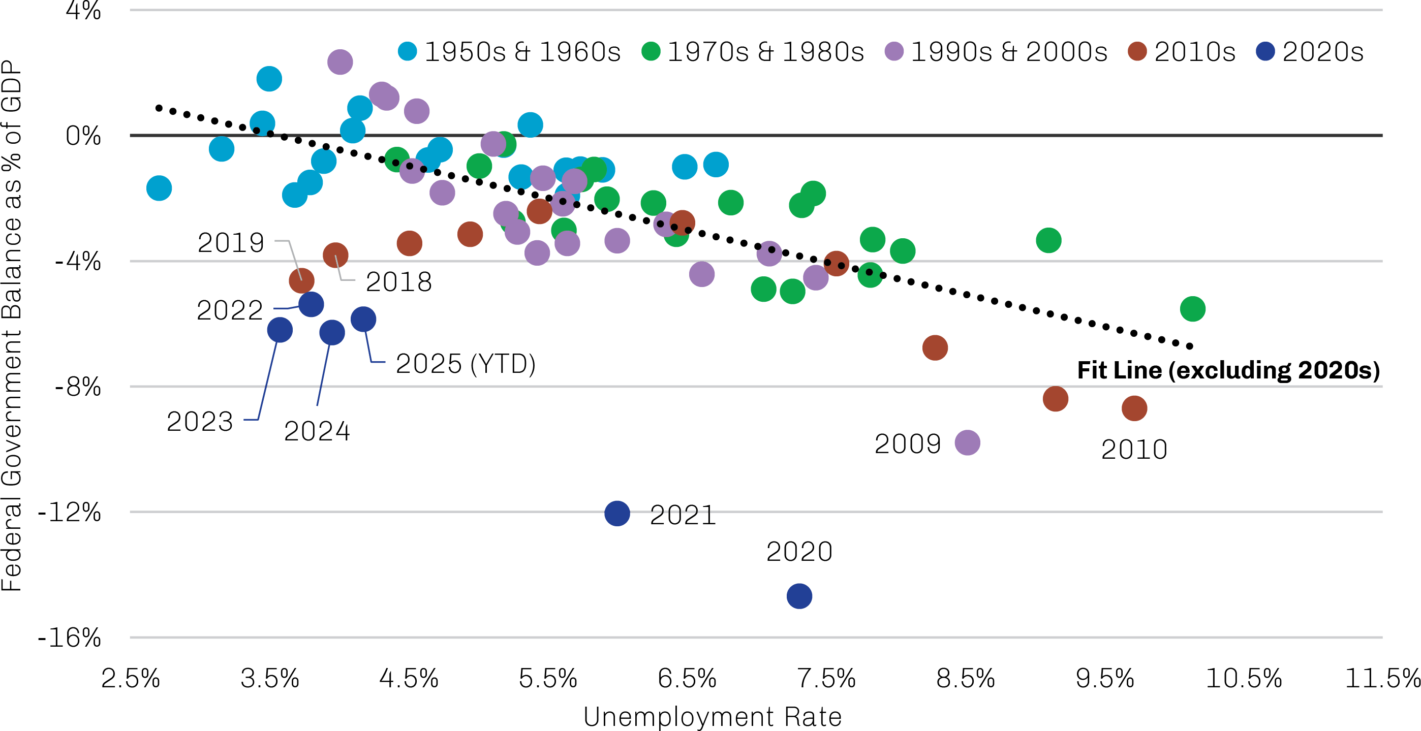 Exhibit 1. Recent Deficits Have Been Historically Wide Relative to Unemployment